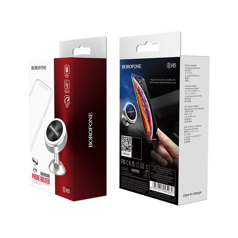 BOROFONE BH5 Platinum in-car phone holder, aluminum alloy, magnetic, small size, durable, for dashboard.